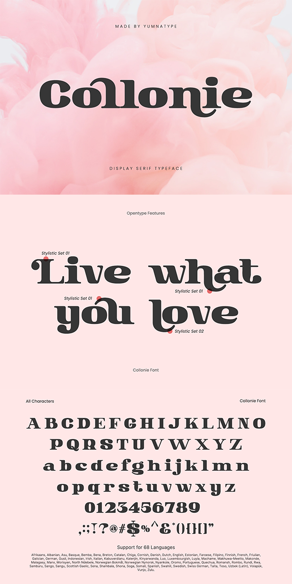 Despite its boldness, Collonie retains a sense of modernity and refinement that sets it apart from traditional serif fonts. The sleek lines and minimalist details give it a contemporary edge. In addition, enjoy the features here.