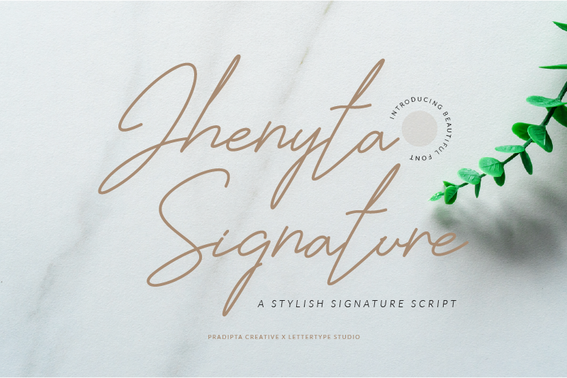 Jhenyta Signature is a thin and elegant handwritten font. It looks beautiful on a variety of designs requiring a personalized style, such as wedding invitations, thank you cards, weddings, greeting cards, logos and so on.