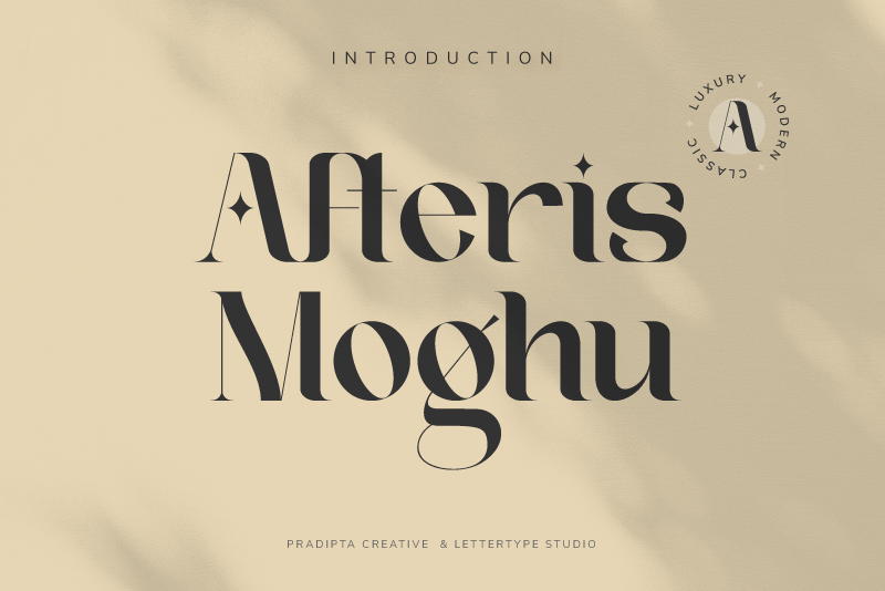 Afteris Moghu Serif is a modern, classic or vintage font. This font will be perfect for logo design, branding, clothing, signage, posters, wedding invitations and so much more! My goal in creating this font was to create a mix of serif fonts with modern and classic styles, which will help your project to be more perfect and beautiful. Don't Miss Out!