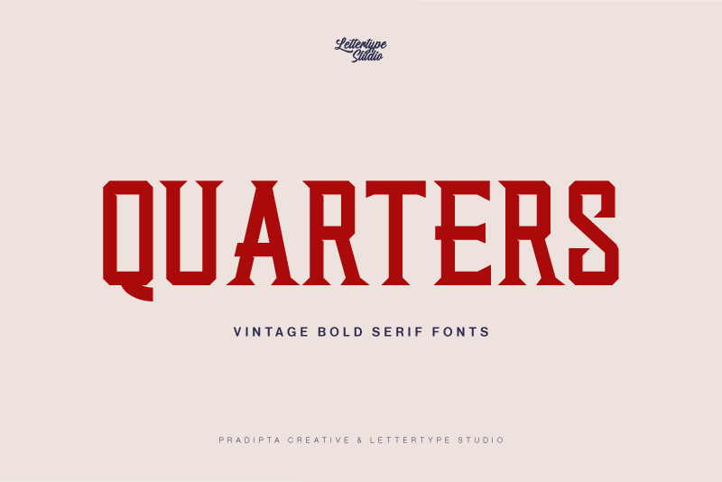 Quarters is a vintage bold serif font inspired by urban culture with strong characters. Welcome to the new bold world serif characters, that fonts will help for any of your projects.