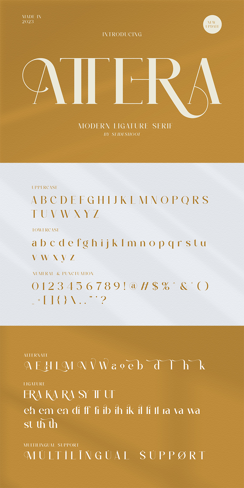 Attera Serif is a balanced, smooth, elegant and stylish serif font. He has a beautiful character. It fits perfectly with invitation card designs, company logos, movie titles, movie names, business cards, book titles, brand names and various other designs. Attera Serif is a subtle serif font that exudes sophistication and elegance. Its stylish alternations and ligatures make this font the perfect partner for any project.