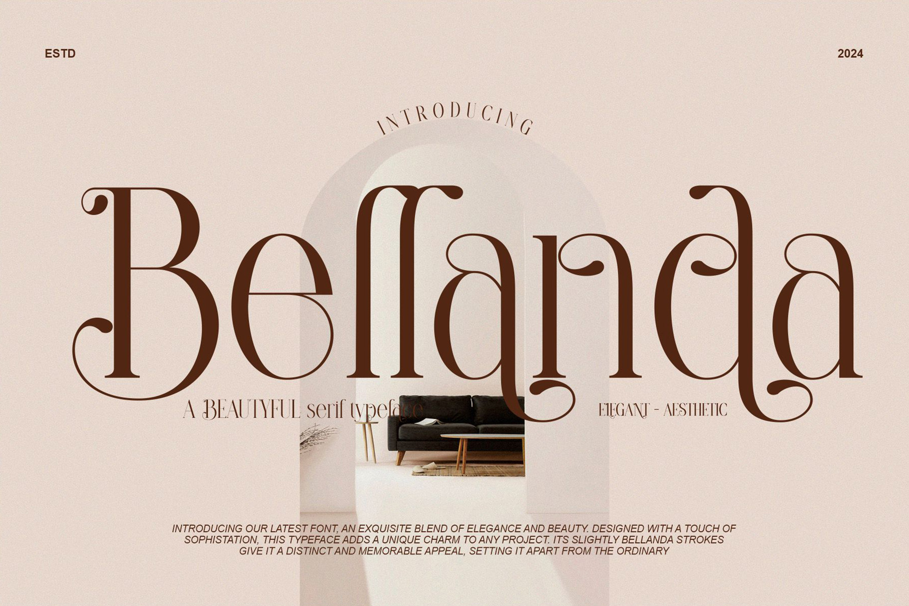 Bellanda Modern and beautiful Serif Typeface inspired by the famous minimalist logo perfect for the purposes of designing templates, brochures, videos, advertising branding, logos, invitation, layout design, elegant crafting, beauty design and other