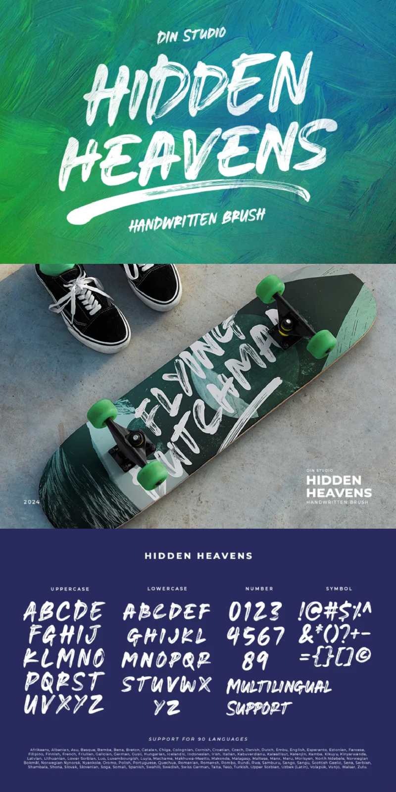 Hidden Heavens fits in logos, name cards, posters, branding materials, packaging, print media, editorial layouts, and many more designs. Find out more ways to use this font by taking a look at the font preview.