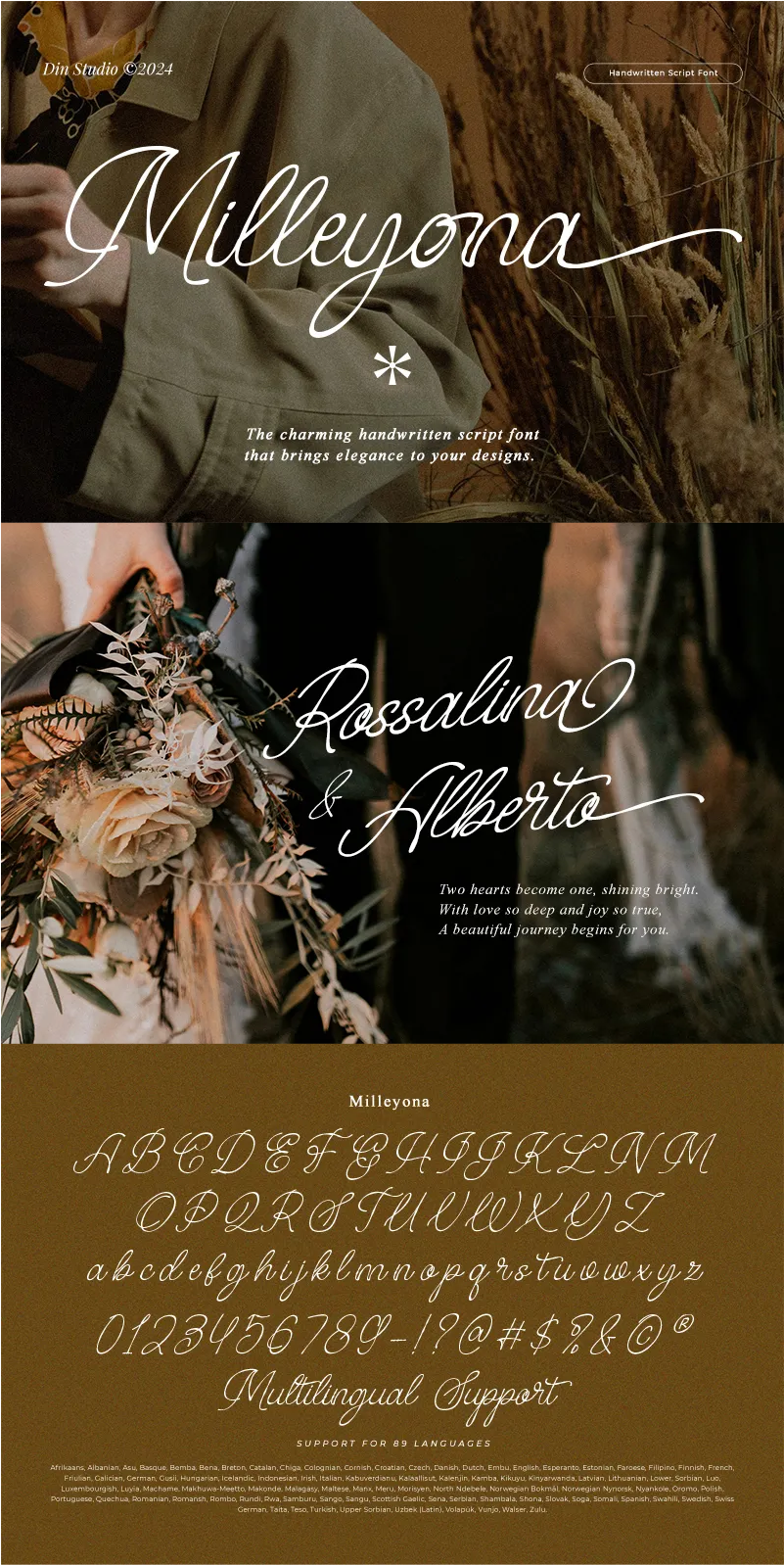Milleyona is a delicate and elegant handwritten font that exudes sophistication with its thin weight. The connected letters flow seamlessly, creating a smooth and continuous script. With fairly consistent letter proportions, Milleyona offers a harmonious and balanced appearance. In addition, enjoy the features here.