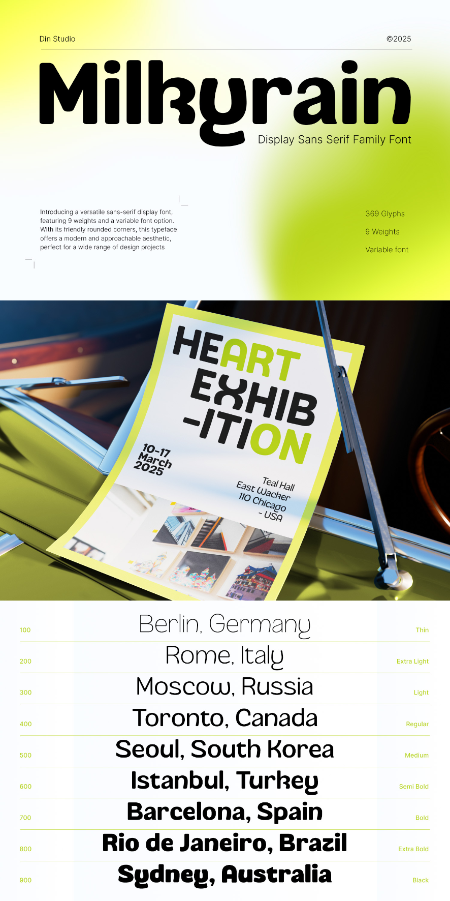 Milkyrain is a charming sans serif font family that blends softness with simplicity. With 9 weights—from delicate Thin to bold Black—and a playful personality shaped by rounded corners and quirky letterforms, Milkyrain adds warmth and character to any design. Its variable font feature lets you fine-tune the weight seamlessly, making it perfect for everything that you need, from branding to creative packaging. In addition, enjoy the features here.