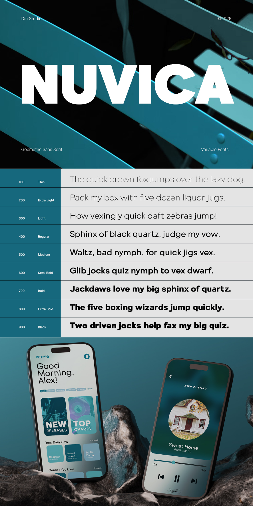 Nuvica is a modern geometric sans serif font family designed to deliver a clean, aesthetic, and contemporary impression. Featuring nine carefully crafted weights from Thin to Black, Nuvica offers exceptional versatility for a wide range of design needs. Its precise geometric construction creates a harmonious, balanced look with crisp, minimalist lines that feel fresh and timeless. Nuvica combines functionality with refined style, making it an essential tool for today’s designers. In addition, enjoy the features here.