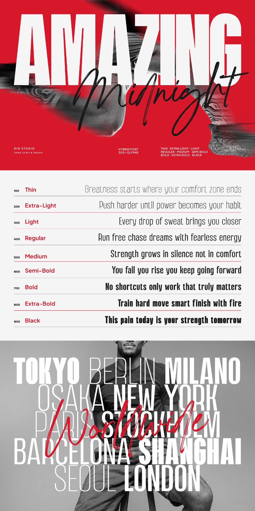 Amazing Midnight is a captivating brush and sans serif font duo designed to bring authentic character and modern simplicity together. The brush script font mimics natural handwriting with expressive, fluid strokes, capturing the true essence of handcrafted brush lettering. Its organic, personal feel adds warmth and authenticity to any project. Complementing this is a clean, minimalist sans serif typeface offered in nine versatile weights, from Thin to Black, providing flexibility and balance for a wide range of applications. Together, Amazing Midnight offers a harmonious pairing. In addition, enjoy the features here.