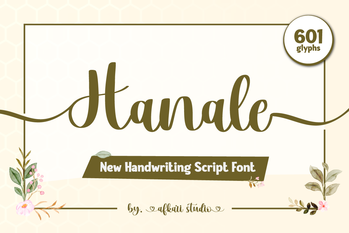 Hanale Handwritten Script Font is a Handwriting Font script that makes with natural line handwriting. This font is suitable for any branding of your design needs, wedding invitations, romantic project, studio brand, logos, invitations, social media posts, clothing, invitation, poster, cafe/resto sign and others.