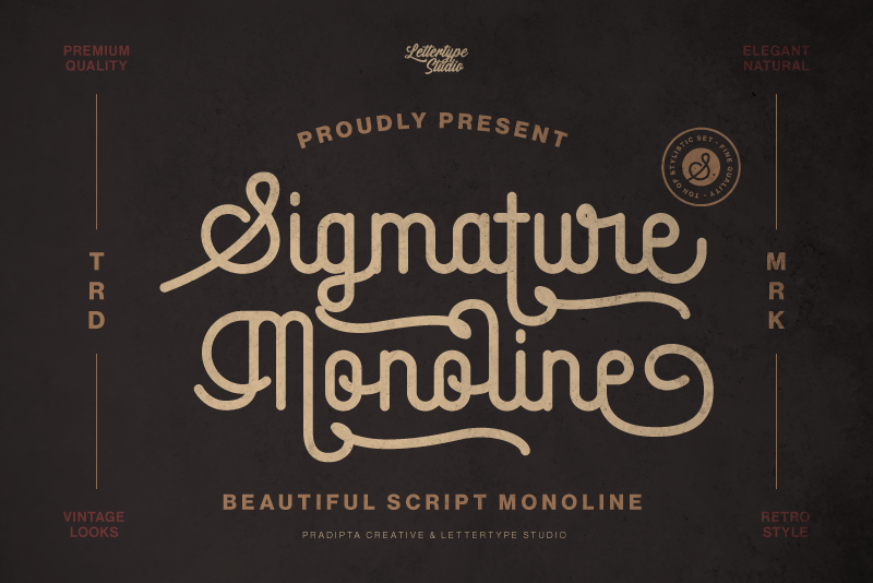 Sigmature Monoline is a beautiful script monoline that is round and elegant, with a retro look coming with 285+ stylistic sets and 22+ swashes.