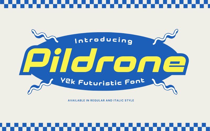 Introducing “Pildrone,” a cutting-edge Y2K futuristic font designed to elevate your creative projects. This font captures the sleek and innovative spirit of the early 2000s, perfect for technology-themed designs, sci-fi visuals, and modern branding. Available in two versatile styles—Regular and Italic—”Pildrone” offers the flexibility to make your text stand out with a unique, futuristic touch. Add a bold, forward-thinking edge to your work with “Pildrone.”