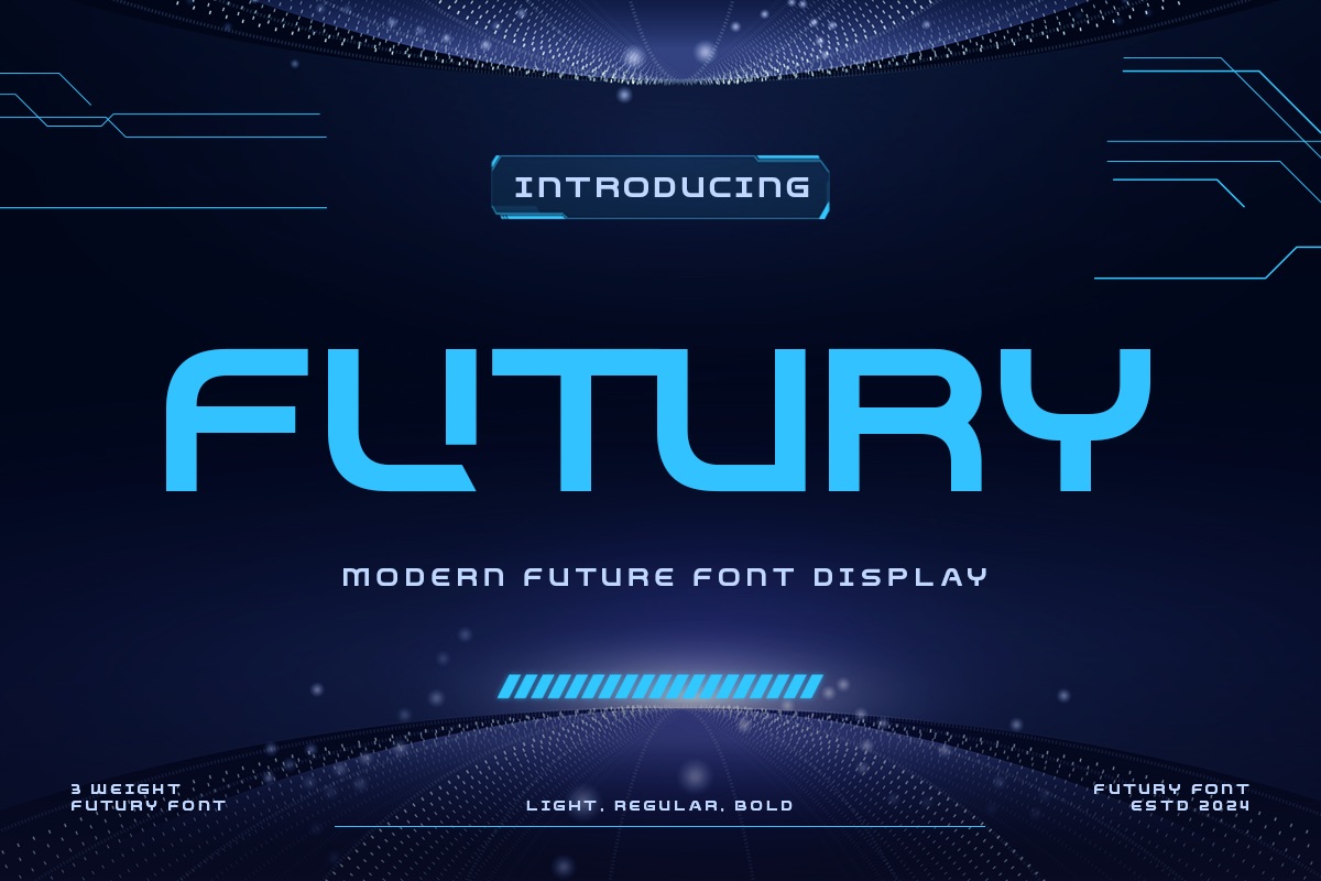 Introducing Futury – Modern Futuristic Display Font, an avant-garde typeface meticulously crafted to embody the essence of modernity and innovation. With its sleek and cutting-edge design, Futury is poised to transform your creative projects, infusing them with a bold, forward-thinking aesthetic.