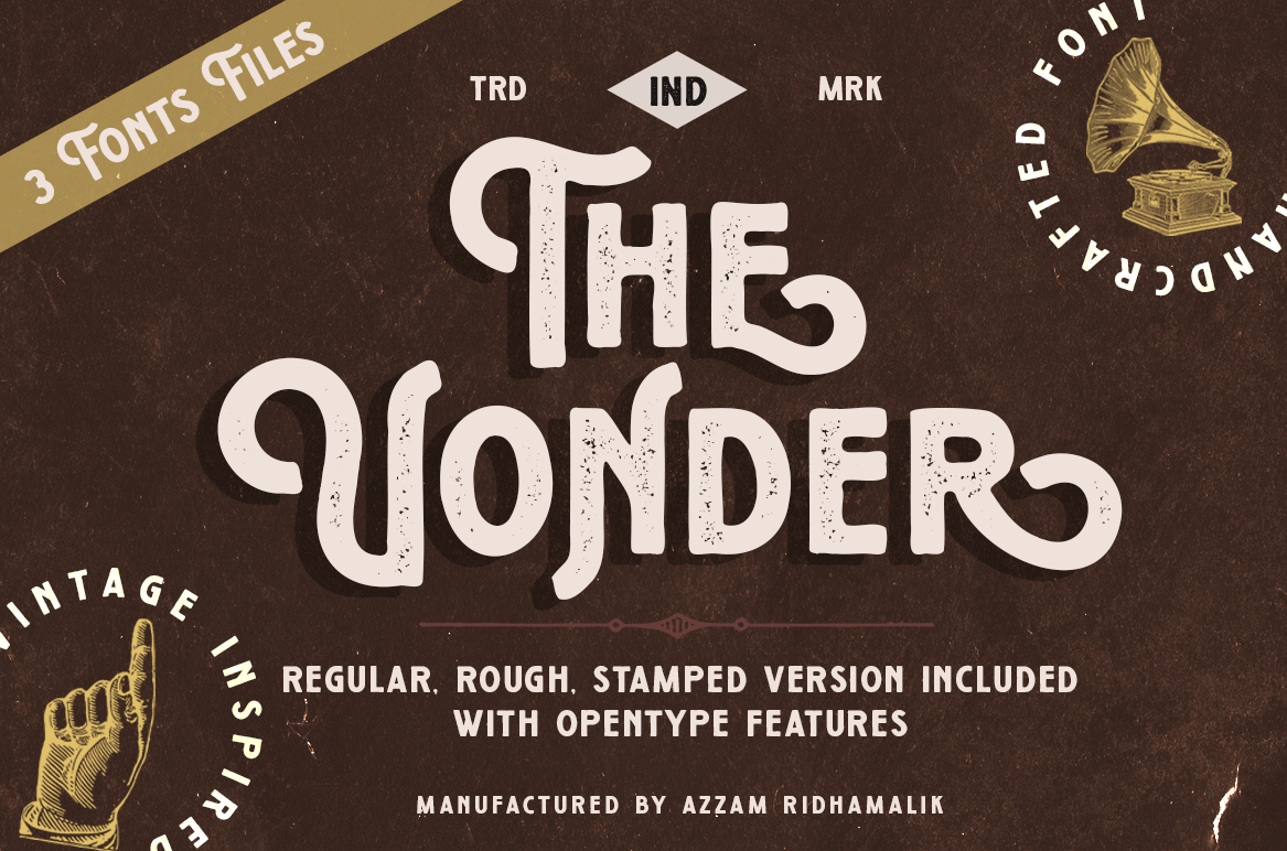Introducing Vonder, a vintage, rough textured and bold display font. No matter the topic, this font will be an incredible asset to your fonts’ library, as it has the potential to elevate any creation. All-caps characters, Vonder’s also has a lot of alternative characters. It looks really cool when meet vintage looks to any piece.