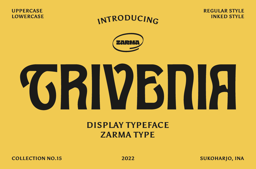 Introducing Trivenia, a display typeface inspired by such an amazing *Baldur Type Specimen”. It has a classic shape with a modern touch on its curves. Comes with 2 styles, regular and inked for you to be more creative in your project.