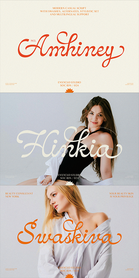 NCL Amhiney is a modern casual script display font. Masterfully designed to become a true favorite, this font has the potential to bring each of your creative ideas to the highest level! It was purposely crafted to be used in large point sizes, although it doesn’t lose its magic in small point sizes. It is perfect for headline, digital ads, magazines, website, poster, branding, and logos. No matter the topic, this font will be an incredible asset to your fonts’ library, as it has the potential to elevate any creation. With this beautiful font, absolutely you can make your project stand out from the rest.