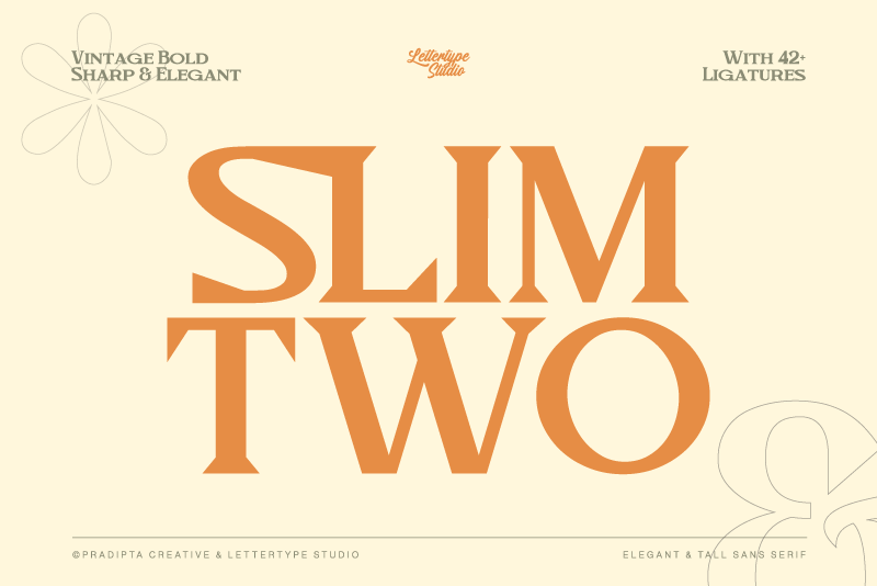 Slimtwo is a vintage bold, sharp, & elegant serif font that is perfect for designers seeking to create timeless and sophisticated designs. Inspired by classic typography, these serif fonts exude a bold presence with sharp, clean lines and elegant curves.