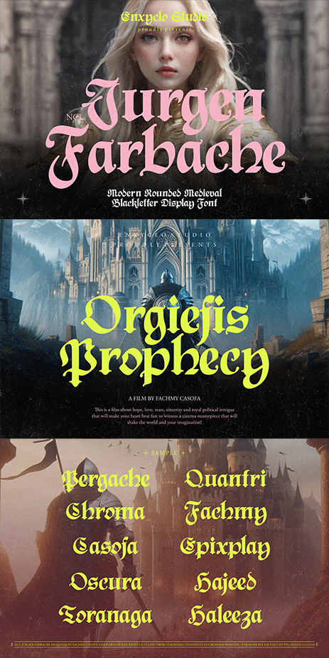NCL Jurgen Farbache is a medieval rounded blackletter font. The letters are inspired from the middle ages with a blackletter style but have rounded corners which are unique and modern. Very suitable for creative projects that have a medieval theme or contemporary designs but have a classic touch. Its modern aesthetics bring a whole new dimension to your designs, making them stand out. Whether you’re working on a website, poster, logo, or any other project, this font adds that extra touch of innovation and sophistication.