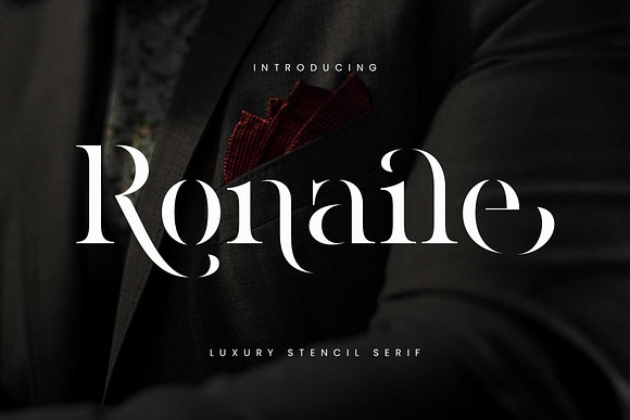 Ronaile is an elegant and modern serif font with a distinctive stencil design that brings a high-end aesthetic to any project. Featuring bold contrasts and sleek, sharp edges, this typeface captures attention while maintaining perfect readability. The disappearing thin lines create a unique look that makes Ronaile stand out as a stunning display font.