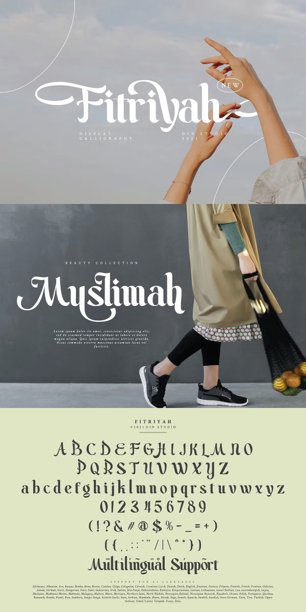 Fitriyah display font includes Multilingual Options to make your branding globally acceptable. See the previews above to get some inspiration on how you can use them.