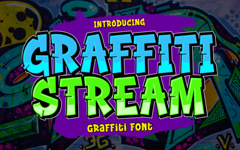 Graffiti Stream is a bold and edgy graffiti font that captures the essence of urban art. Perfect for street-style designs, posters, logos, and creative projects, it adds a vibrant and rebellious touch to your work. Unleash your creativity with Graffiti Stream!
