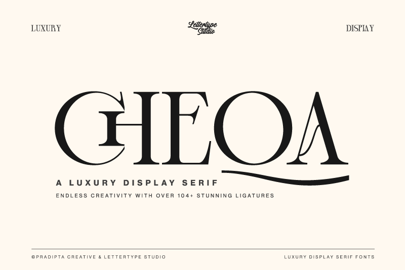 Cheqa is a Luxury and elegant chic serif font with a classic style inspired by 18th-century typography. Perfect for sophisticated branding, editorial design, web typography, and more. These fonts offer timeless appeal with clean lines, geometric and luxurious details, ensuring your projects stand out with elegance and style. Ideal for designers seeking versatility and refinement in their typography choices.