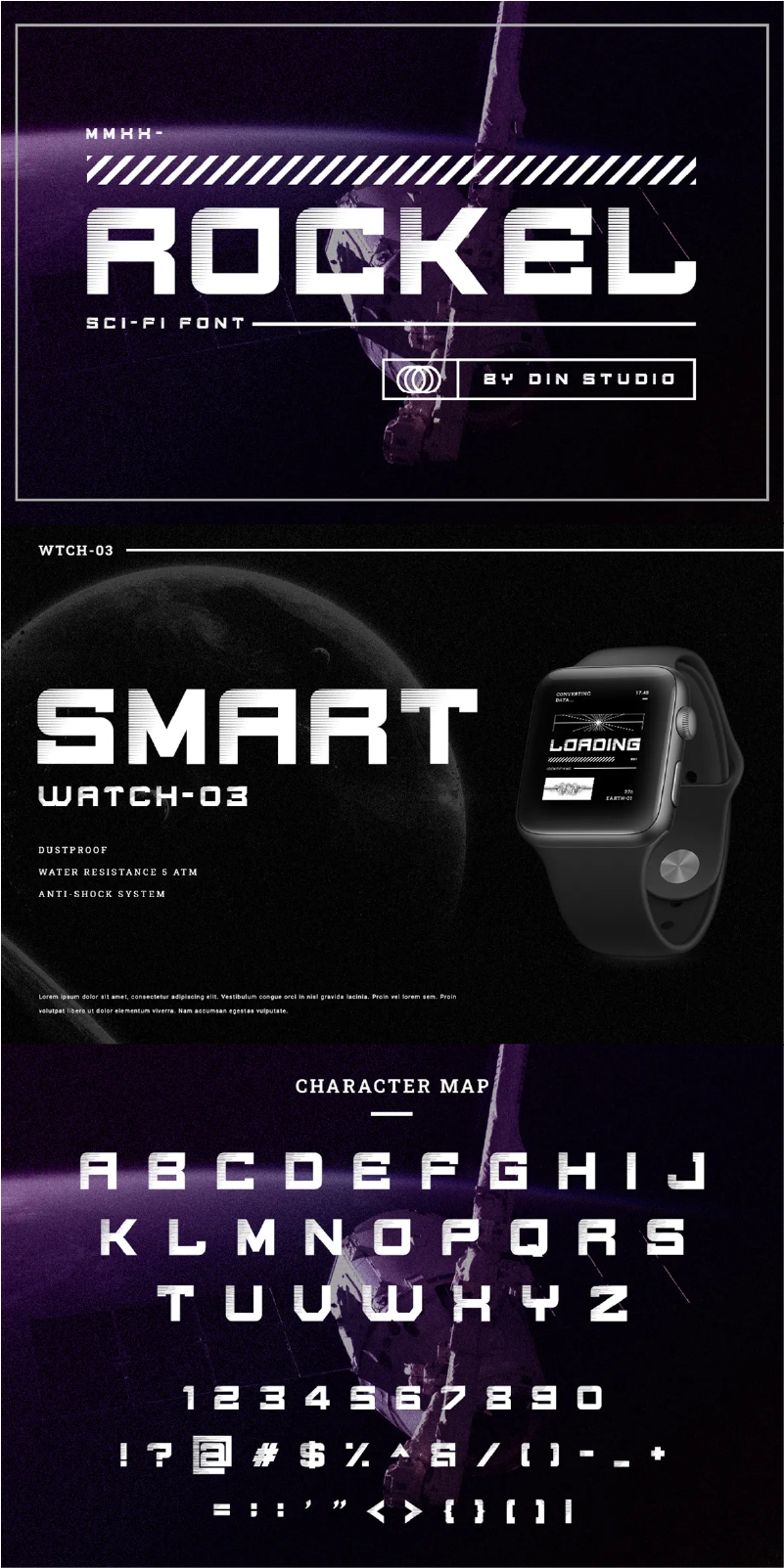 Rockel is a bold and commanding display font that transports you to the realms of science fiction with its futuristic design. With its sci-fi themed style, Rockel captures the essence of futuristic technology. Each letter is meticulously designed with sharp angles and sleek lines, creating a sense of modernity and sophistication that is both captivating and awe-inspiring. The large letters of Rockel command attention and make a bold statement, while the thick weight adds to its powerful presence.