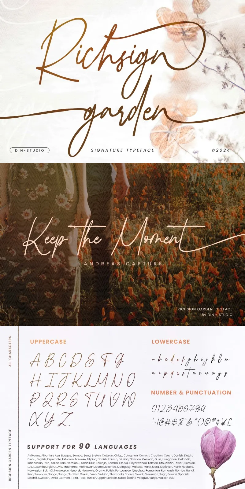 Richsign Style is an elegant script font crafted with a refined signature style. Designed with beautifully connected letters and subtle, low contrast, this font adds a touch of sophistication and smooth flow to any project. Brings effortless grace and a polished look to your designs with Richsign style.