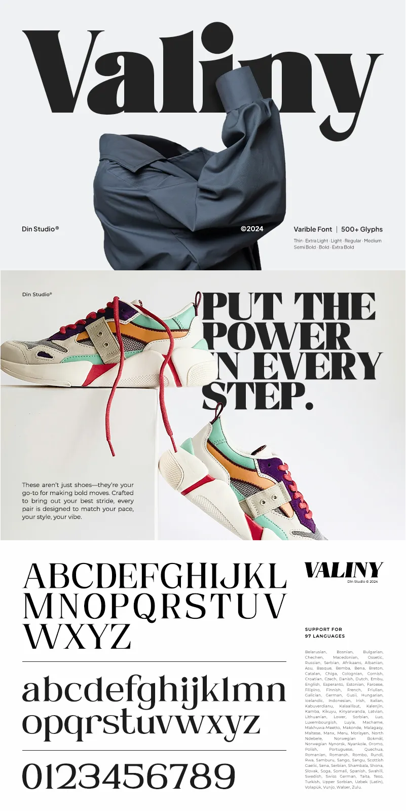 Valiny, a sophisticated serif font family designed to elevate your creative projects. With 9 distinct weights and elegant Italic versions, Valiny combines timeless elegance, modern flair, and unwavering strength. Its harmonious proportions and refined details make it more versatile.