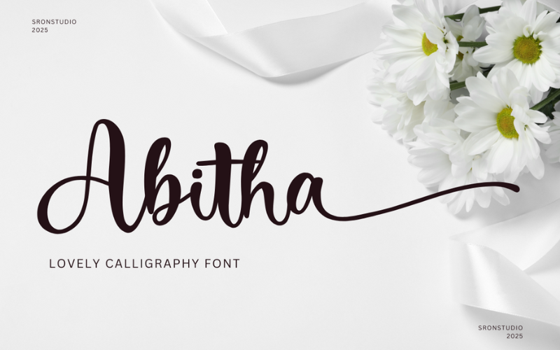 Abitha is a lovely calligraphy font that radiates elegance and charm. With its smooth, flowing curves and delicate strokes, this font is perfect for creating romantic and heartfelt designs. Ideal for wedding invitations, greeting cards, branding, logos, or any project that needs a touch of sophistication and beauty, Abitha adds a timeless appeal to your work. Its graceful letterforms make every word feel special and full of love.