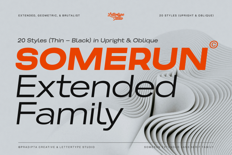 Somerun is a modern typography with our curated selection of sans serif extended fonts embody grotesque, geometric, and brutalist styles. These typefaces are meticulously crafted to deliver clarity, neutrality, and impactful visual presence, making them ideal for contemporary design projects.