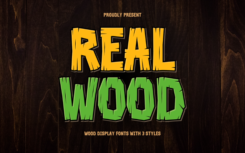 Realwood is a bold and rustic wood display font that brings the warmth and texture of natural wood to your designs. With its rugged, handcrafted feel, this font is perfect for branding, signage, packaging, posters, and any project that needs a touch of organic charm. Realwood embodies the beauty of nature with its sturdy, textured letterforms, making your designs stand out with a strong and earthy appeal.