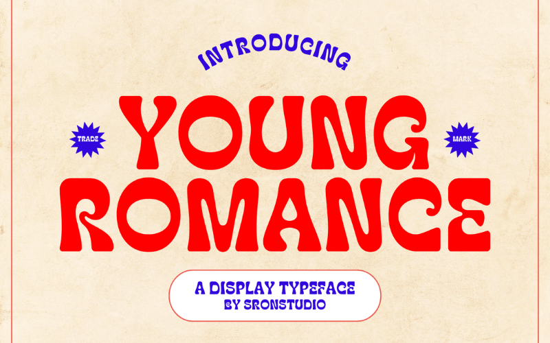 Young Romance is a charming retro display font that brings nostalgic flair and vintage vibes to your designs. With bold curves, playful letterforms, and a groovy personality, this font captures the essence of classic 70s and 80s aesthetics. Perfect for posters, album covers, packaging, branding, and anything that craves a touch of retro romance.