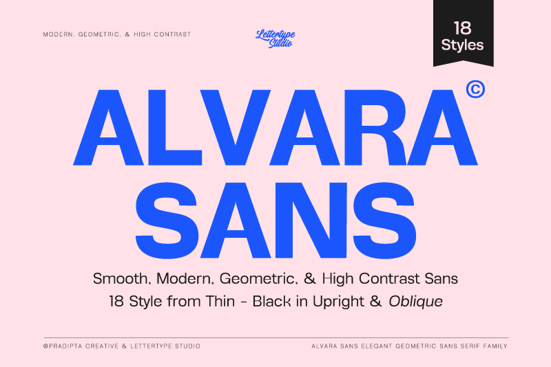 Alvara is a sophisticated sans-serif font family that blends smooth geometry with a modern minimalist touch. With 18 carefully crafted styles ranging from thin to black, and matching obliques for each weight, Alvara offers perfect balance between form and function. Its soft curves, clean structure, and neutral tone with high contrast make it a powerful choice for branding, editorial design, packaging, digital interfaces, and corporate identity. Every detail is carefully designed to deliver high readability, versatility, and timeless professionalism across all media.